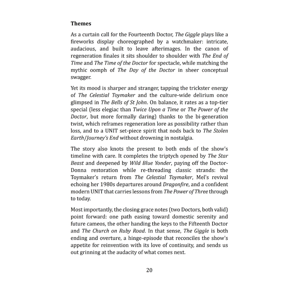 With detailed summaries, character spotlights, and thematic commentary, Doctor Who – The Fourteenth and Fifteenth Doctors captures the transition between eras and the excitement of a franchise forever reinventing itself.